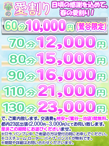 ◆◇◆優しい人妻、愛、大幅割引キャンペーン◆◇◆ ◆◇◆愛割リ見たで!!!◆◇◆ ・60分10000円ー(鶯谷限定) ・70分12000円― ・80分15000円― ・90分16000円― ・110分21000円― ・130分23000円―でご案内します。 ※交通費も格安で(鶯谷〜池袋)間無料、都内23区出張、¥2000〜¥3000ーにてお伺いいたします!!!是非!!!この期間にお遊びくださいませ。!!! ※只今、パンプレ中、ご希望の方は受付の時にお申しでください。 ※コスプレ、ローター(バイブ)、パンスト、無料です。 ※期間や詳細はお問い合わせくださいませ。 |